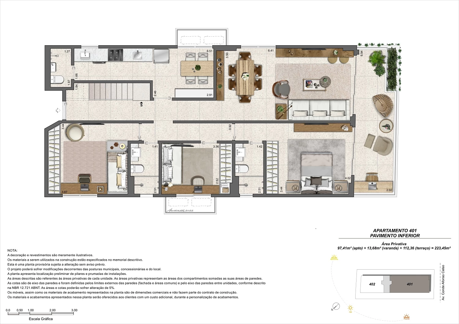 Duplex com 3 quartos com 223m²